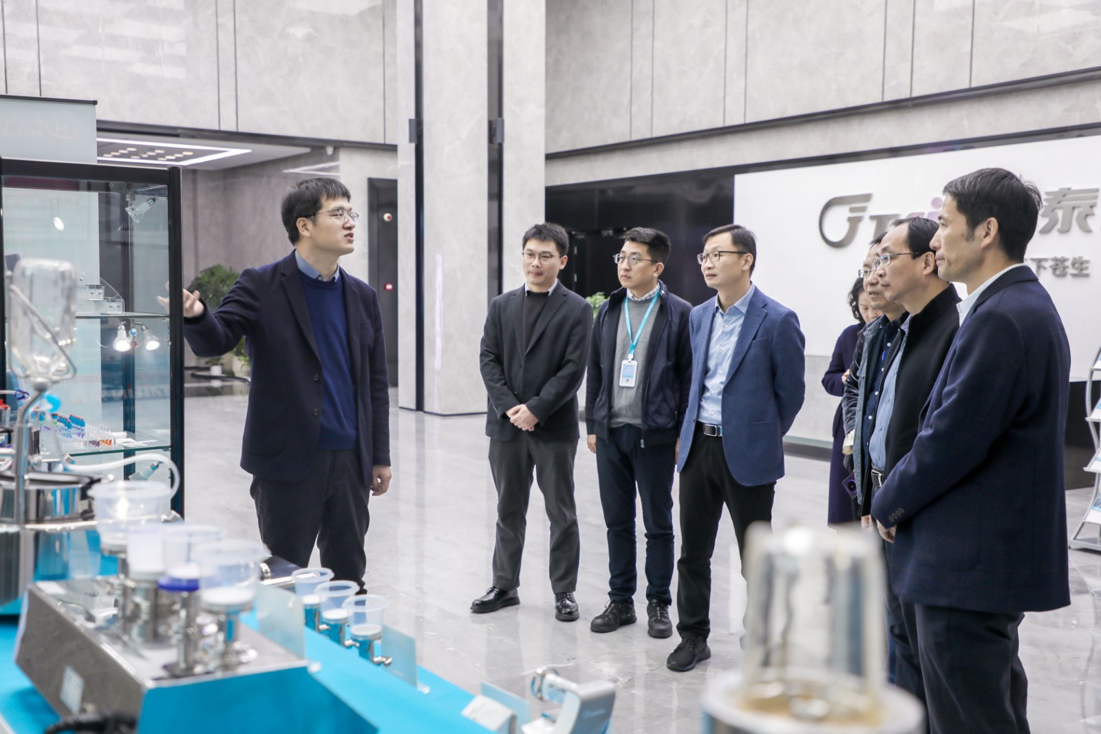 簽約結(jié)束后,在泰林生命科學(xué)副總經(jīng)理徐磊的陪同下,南方水中心張東總經(jīng)理一行參觀了泰林生命科學(xué)與泰林醫(yī)學(xué)工程兩個園區(qū),詳細(xì)了解泰林水生態(tài)(微生物、寄生蟲和藻類)檢測整體解決方案創(chuàng)新與探索,并就水生態(tài)檢測領(lǐng)域的研發(fā)與場景化應(yīng)用進(jìn)行了深入交流,同時對泰林在制藥、新材料、環(huán)保、半導(dǎo)體等領(lǐng)域的應(yīng)用與布局表示贊賞。
