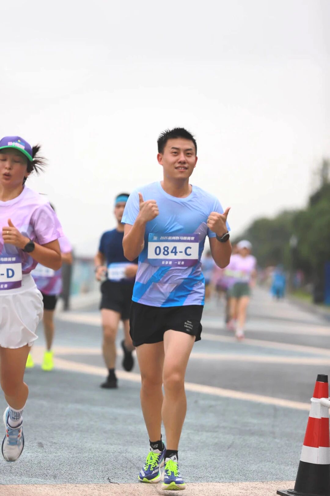 本次比賽從錢江龍廣場啟程,沿之江綠道至5.2公里處折返,最終回到起點(diǎn)。持續(xù)的大雨讓賽道格外濕滑,這不僅是對選手體能的考驗(yàn),更是對其意志的挑戰(zhàn)。