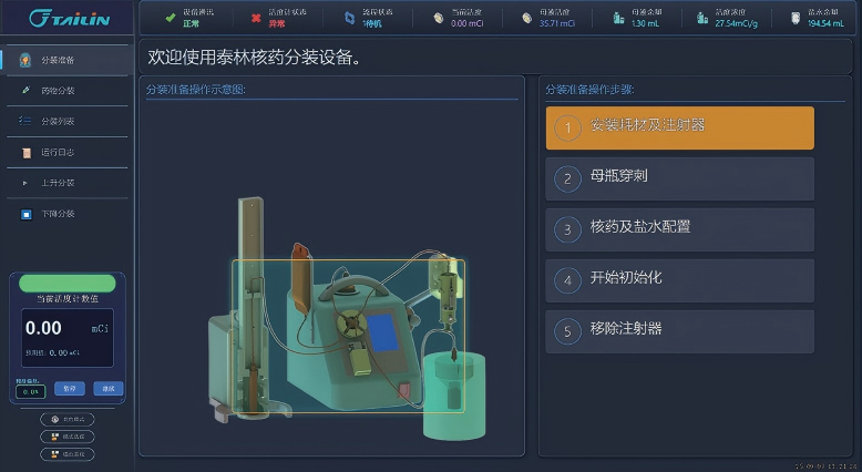 泰林正電子藥物分裝機(jī)具有自動(dòng)分裝核藥功能,能根據(jù)臨床需求活度劑量將母液分裝至注射器,尤其適合正電子藥物分裝。
